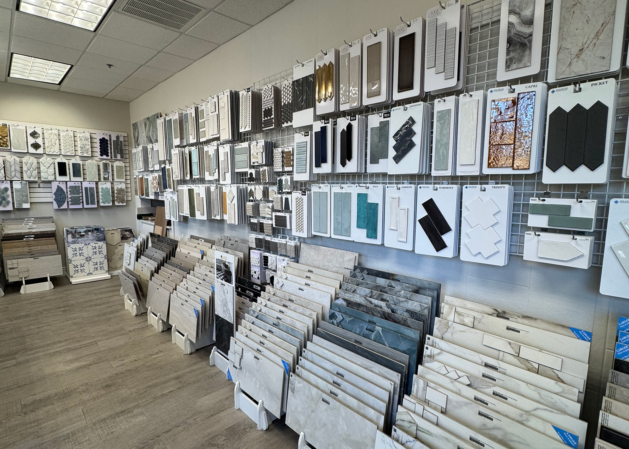One of the most eye-catching features at Atlanta Flooring was the breathtaking selection of decorative tile. Entire walls were dedicated to intricate mosaics, marble-inspired designs, and bold geometric patterns—proof that tile is becoming a major design moment in today’s homes. Whether it’s a patterned backsplash, a textured shower wall, or a dramatic laundry room floor, homeowners are shifting toward tile that adds personality while maintaining a timeless aesthetic.